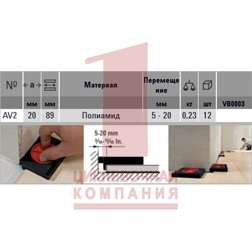 BESSEY BE-AV2 - Набор распорок предназначен для ровной укладки паркета, плитки, ламината без использования дополнительных инструментов. Подробная информация о товаре Плавная и быстрая регулировка расстояния до стены от 5 до 20 мм Распорка для свободной укладки ламината или паркетной доски Большая контактная площадь для защиты поверхностей от продавливаний Легко снимается путем простого отворачивания Малый вес и компактность. Тип материала: Полиамид Вес : 0.23 кг Производитель: Bessey Страна: Германия Перемещение: 5-20 мм Высота: 20 мм Ширина: 89 мм Назначение: Ровная укладка паркета.
