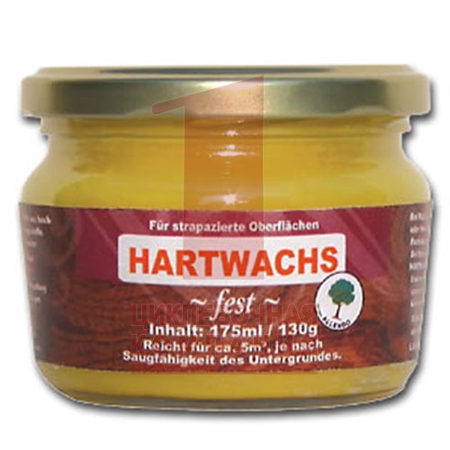 Alendo Hartwachs fest - Воск специально разработан для поверхностей с большими нагрузками, например столешницы, полы, лестницы. Воск используется для естественной консервации и защиты поверхностей из твёрдой и мягкой древесины и камня с открытыми порами (например терракотовая плитка) и образует устойчивое водо- и грязезащитное покрытие, невосприимчивое к следам от обуви. Возможно нанесение на поверхности, обработанные маслами для древесины.